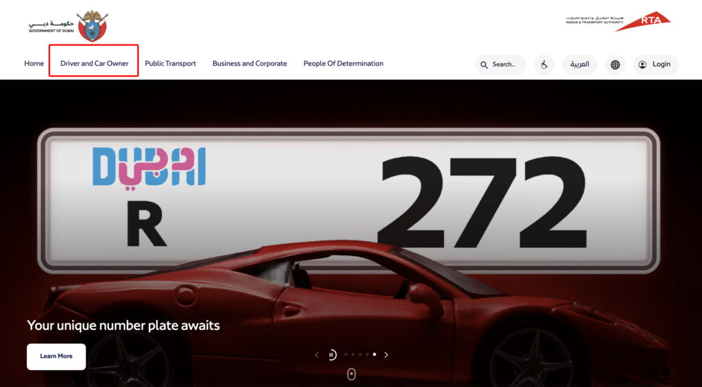 - Navigate to the ‘Driver and Car Owner Services’ section.